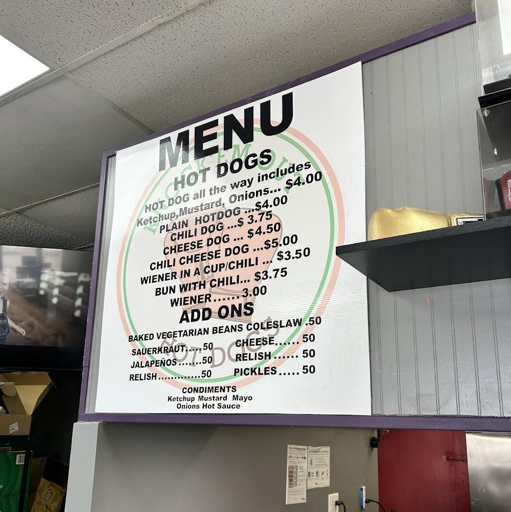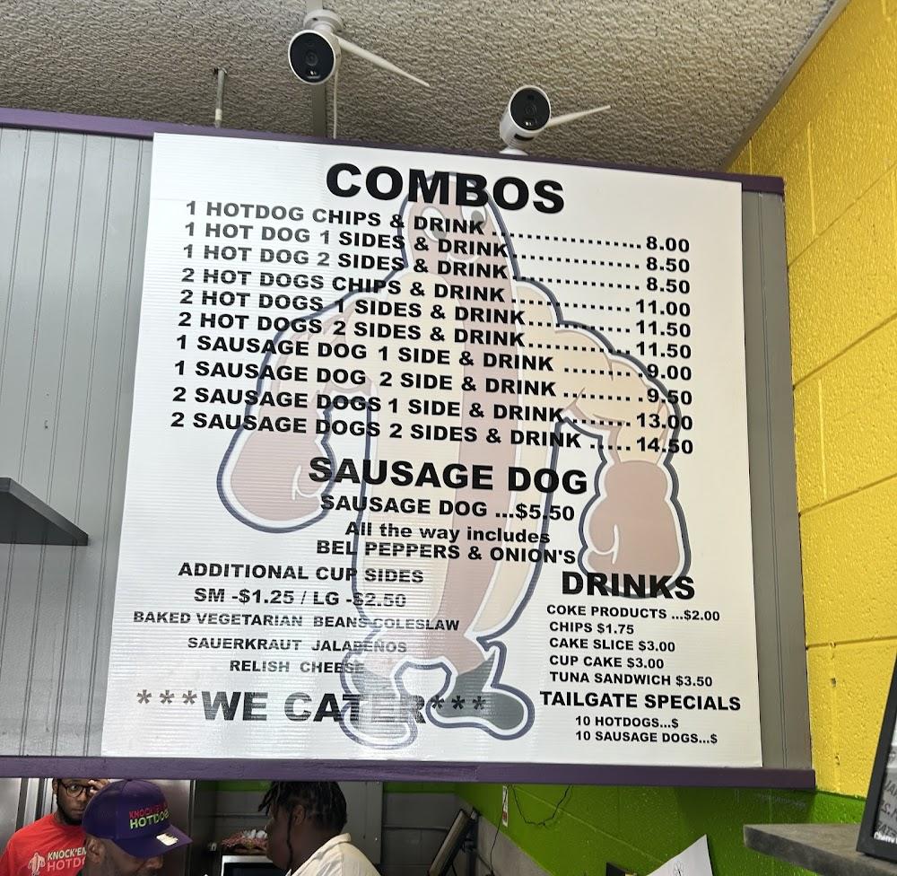 The menu at Knock'em Out Hotdogs is straightforward but satisfying. Hot dogs range from plain to chili cheese. Unique options like a sausage dog add variety. Diners can pair their hot dogs with chips and drinks. Sides like baked beans and jalapeños offer special touch. Desserts, including red velvet slices and cupcakes, add sweetness. Prices are reasonable, averaging around $15.38.